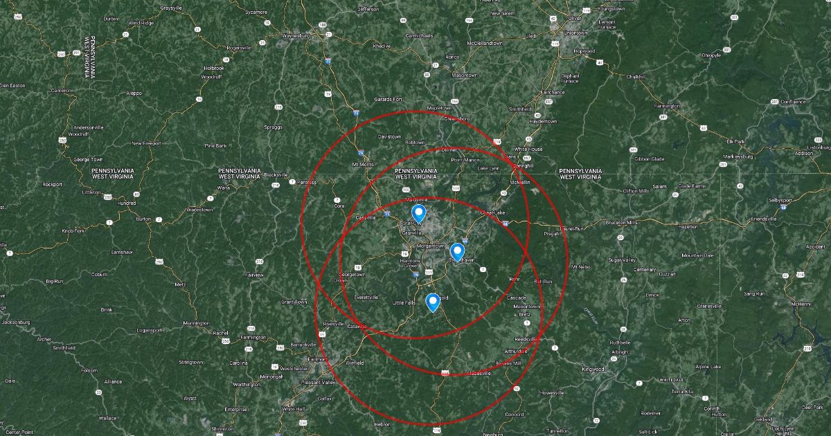 There 3 distribution centers and the 10 mile radius from each that they travel