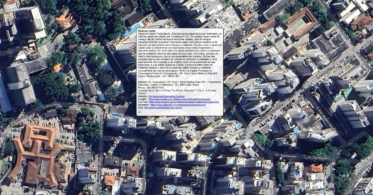 Medicina Capilar Florianópolis Trompowsky Centro Av Trompowsky, 291 Torre 1 (torre Médica) Sala 403 – Centro, Florianópolis – SC, 88015-300