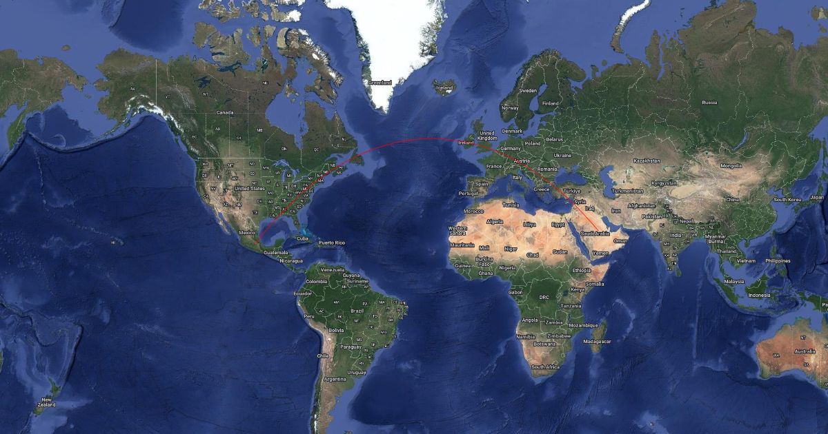 Mexico City-Riyadh Great Circle