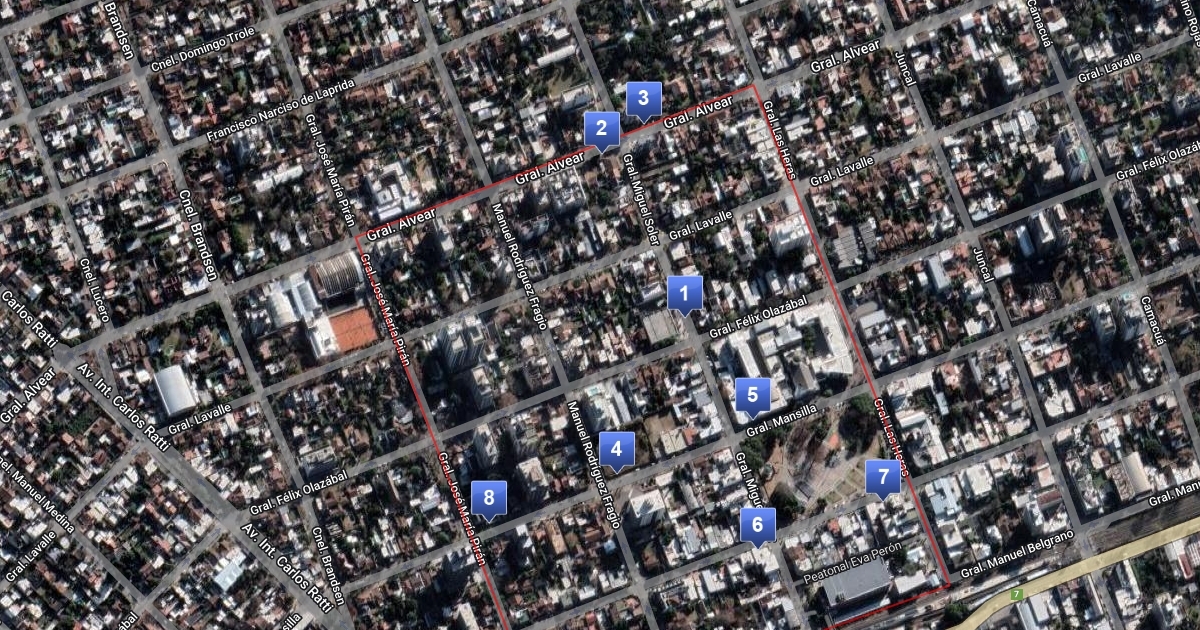 Mapa basado en Paradas de Colectivo dentro del perímetro establecido. Dicho perímetro corresponde a Colegio Parroquial San Judas Tadeo