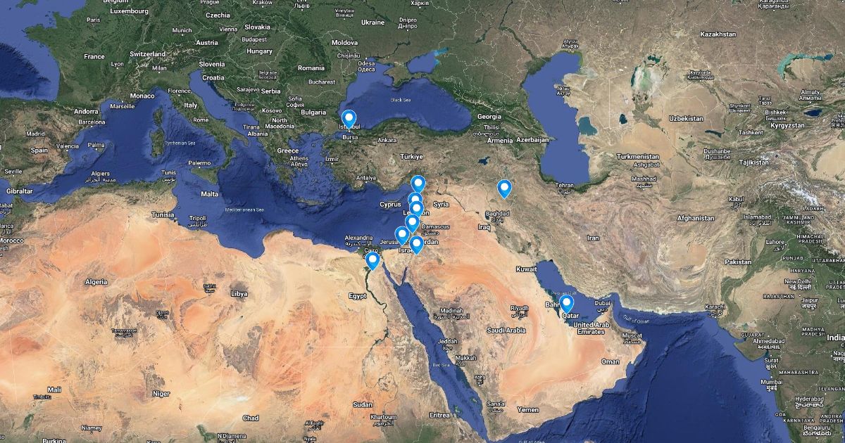 Places in the Middle Eastern that travelers go to.