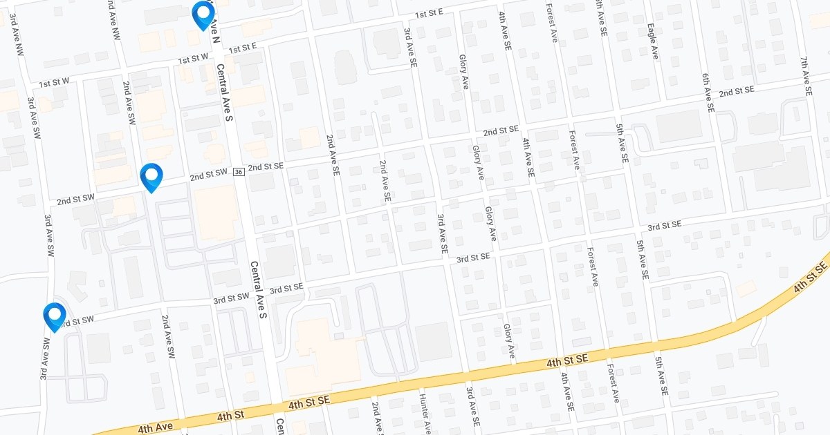 Map of the location of unique fire hydrants in Milaca, MN.