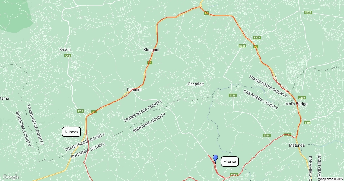 Misanga-Brigadiier-Naitiri-Sikhendu-Kiminini-Kitale-Moi's Bridge-Matunda-Brigadiier route