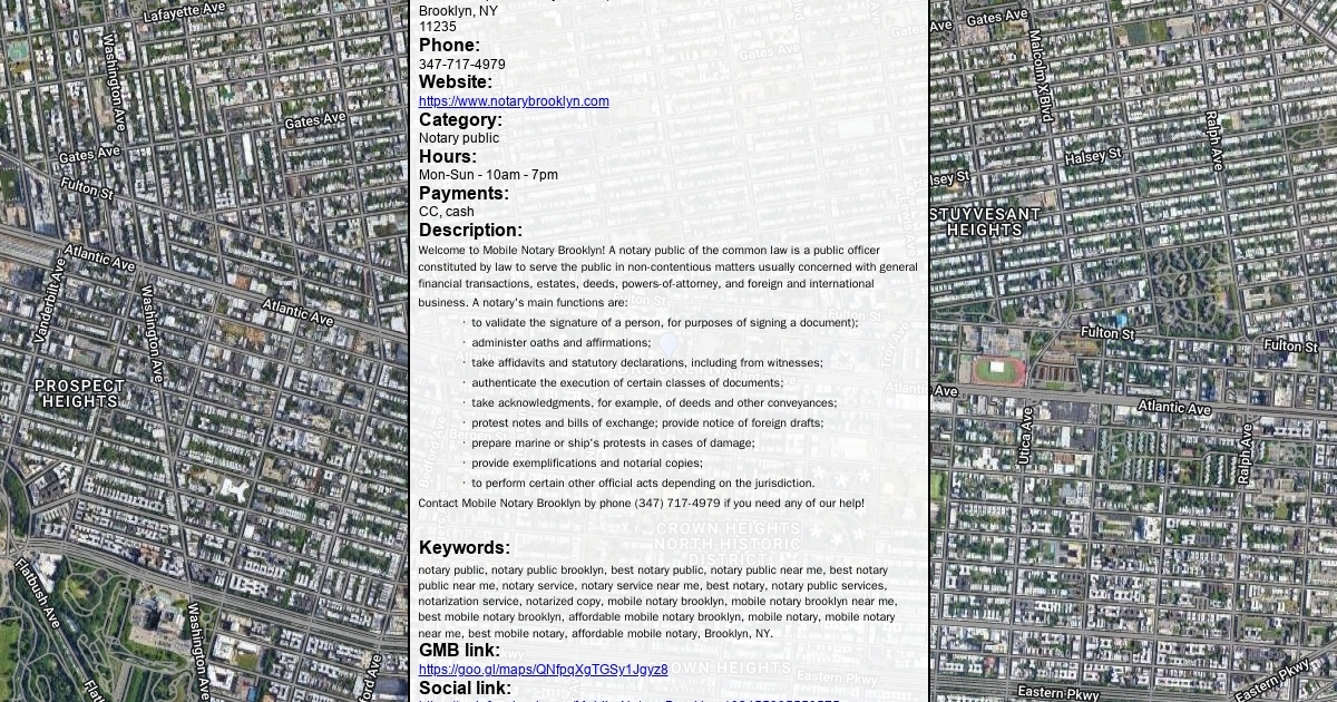 Welcome to Mobile Notary Brooklyn! A notary public of the common law is a public officer constituted by law to serve the public in non-contentious matters usually concerned with general financial transactions, estates, deeds, powers-of-attorney, and foreign and international business. A notary's main functions are: