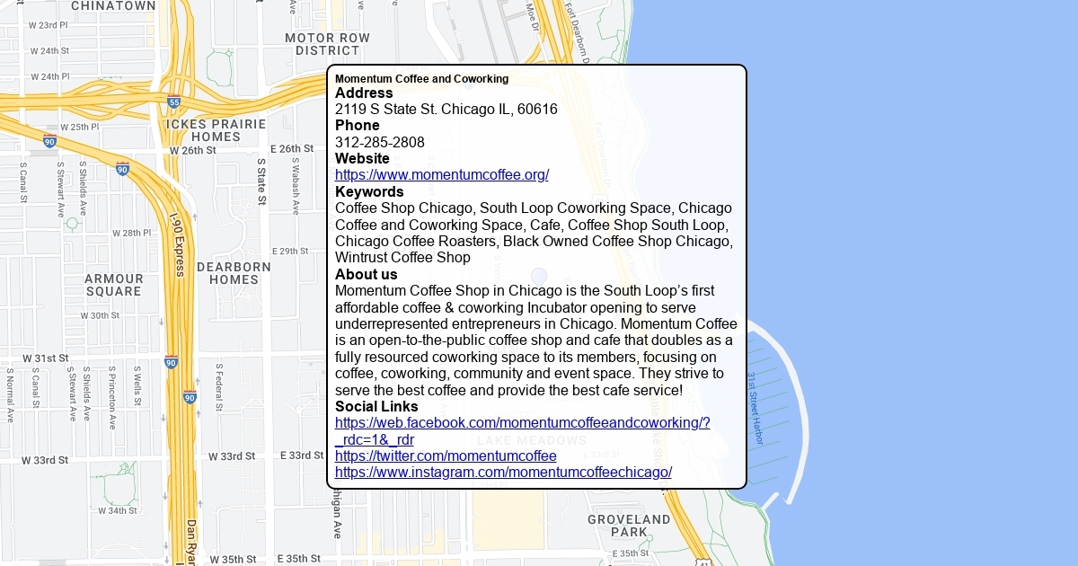 Momentum Coffee Shop in Chicago is the South Loop’s first affordable coffee & coworking Incubator opening to serve underrepresented entrepreneurs in Chicago. Momentum Coffee is an open-to-the-public coffee shop and cafe that doubles as a fully resourced coworking space to its members, focusing on coffee, coworking, community and event space. They strive to serve the best coffee and provide the best cafe service!