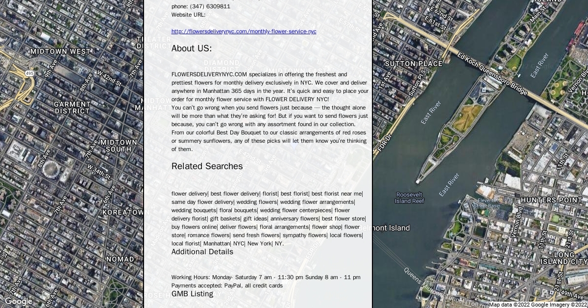 FLOWERSDELIVERYNYC.COM specializes in offering the freshest and prettiest flowers for monthly delivery exclusively in NYC. We cover and deliver anywhere in Manhattan 365 days in the year. It’s quick and easy to place your order for monthly flower service with FLOWER DELIVERY NYC!
