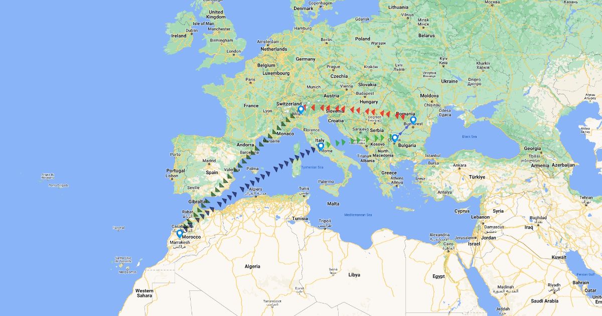 Travel path to Morocco