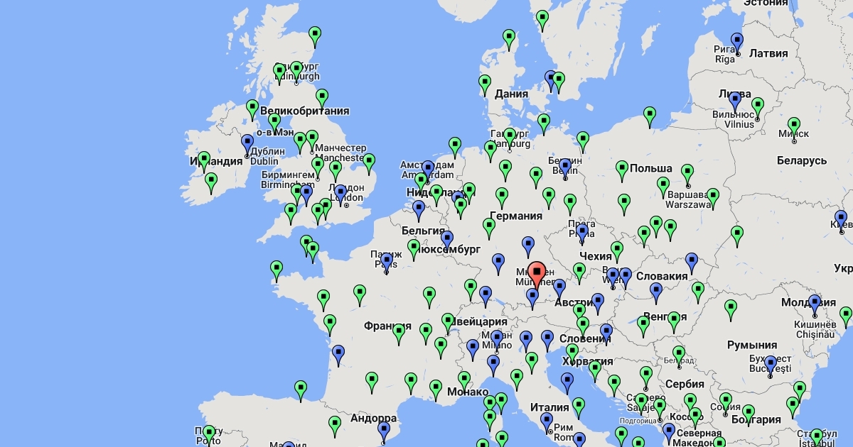Map of routes from Munich hub.