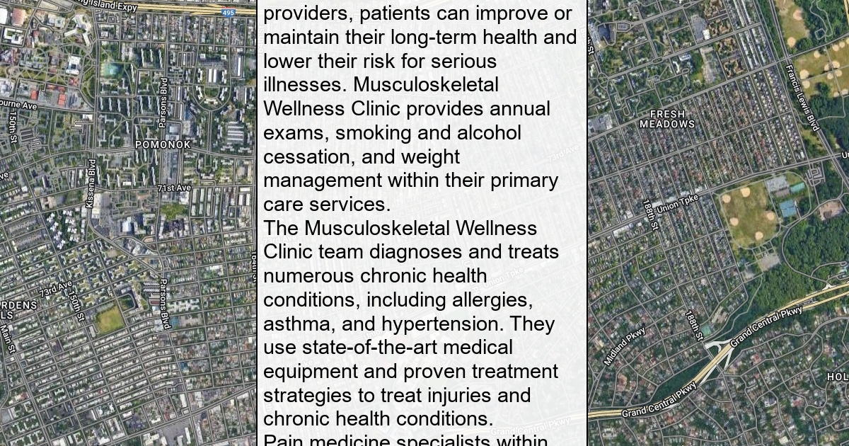 Musculoskeletal Wellness Clinic is a multispecialty medical practice serving patients of all ages in the Forest Hill area of Queens, New York City, and Little Neck, New York. Skilled, empathetic specialists work with patients to examine and diagnose the root causes of their pain or other symptoms and swiftly develop advanced, individualized care plans.