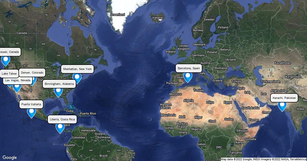 This map is a list of the best vacations I have ever had. It includes places in the US as well as out of.