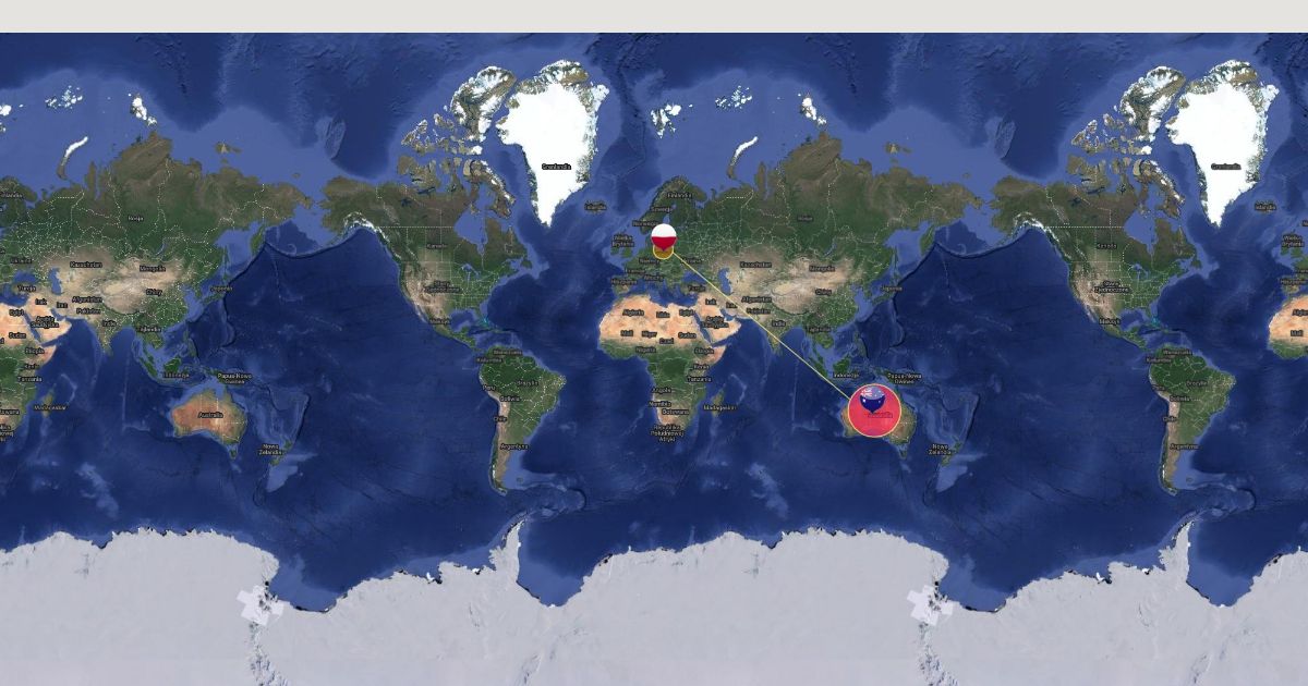 The distance between Poland and Australia