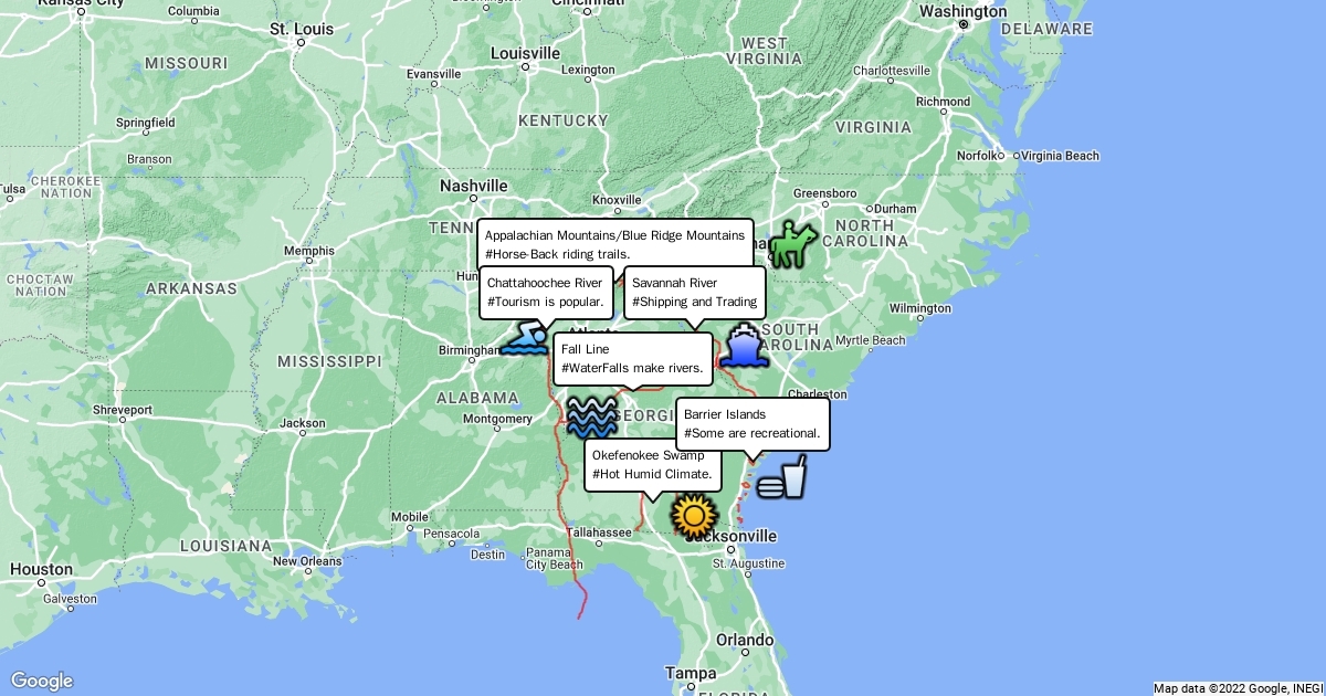 My 6 Major Physical Feature Map of Georgia