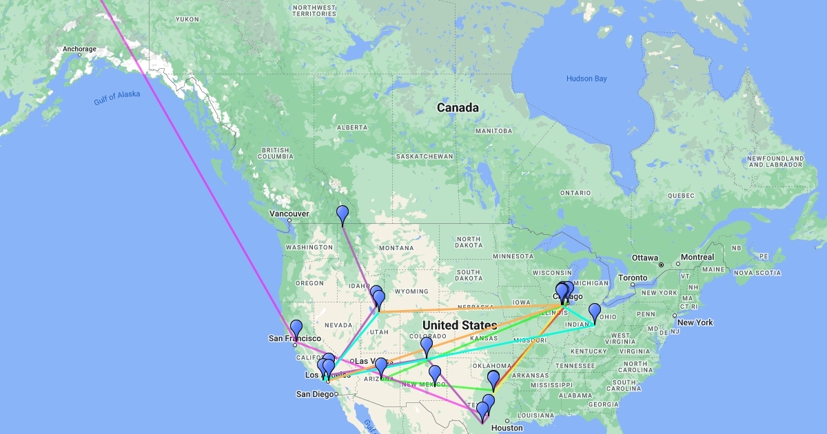 A simple map of my family's migration patterns!
