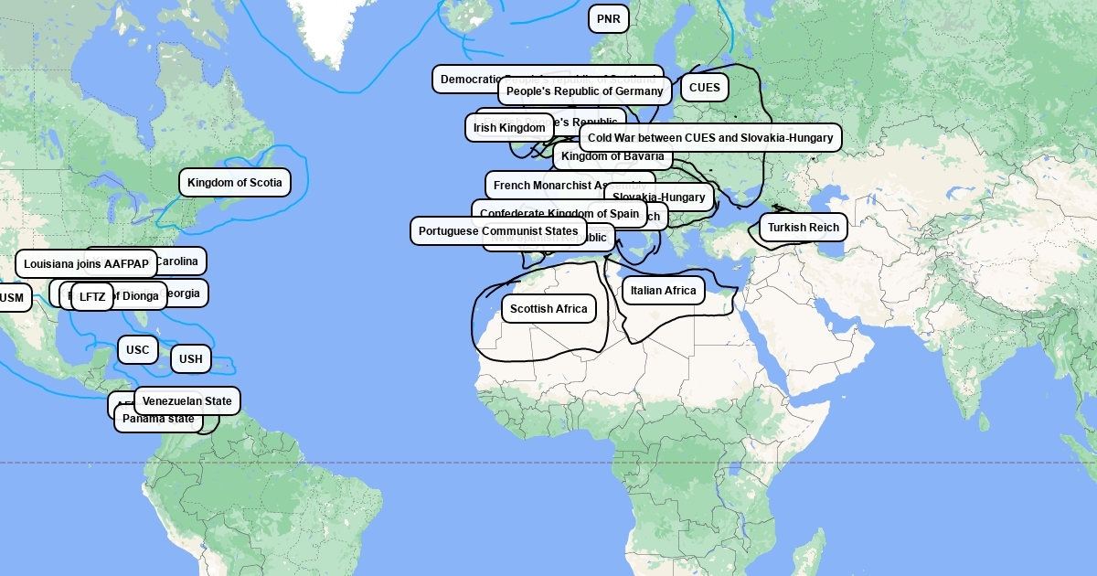 Note: USM stands for United States of Mexico, USH stands for United states of Hispainola, USC stands for United states of Cuba UNCR stands for Union of Nordic Communist republics