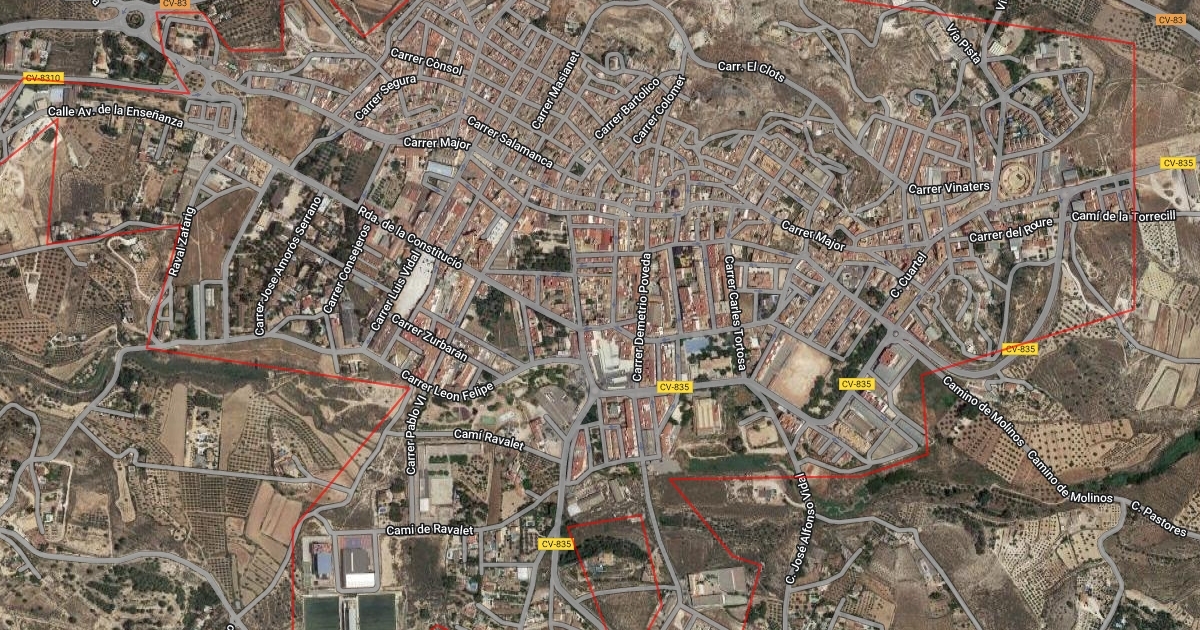 Delimita de forma orientativa el núcleo urbano de Monóvar para informar a los deportistas las zonas que deben llevar mascarilla mientras practican deporte.