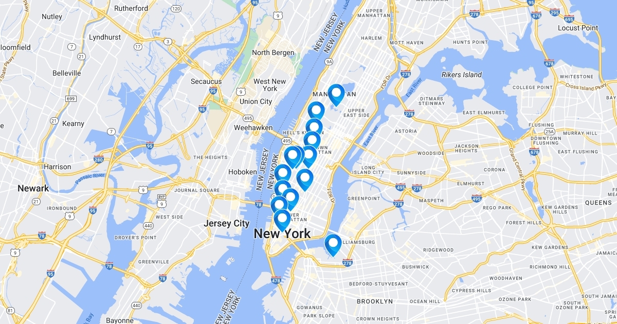Map of places of interest + the verticals they relate to