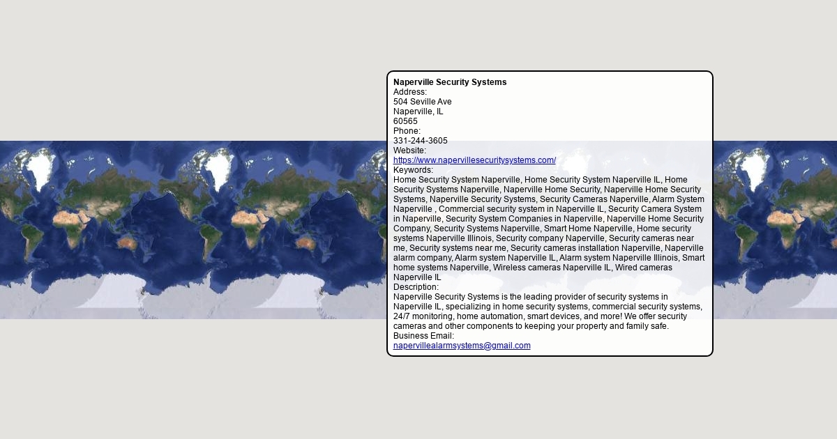 Address: 504 Seville Ave Naperville, IL 60565 Phone: 331-244-3605 Website: https://www.napervillesecuritysystems.com/