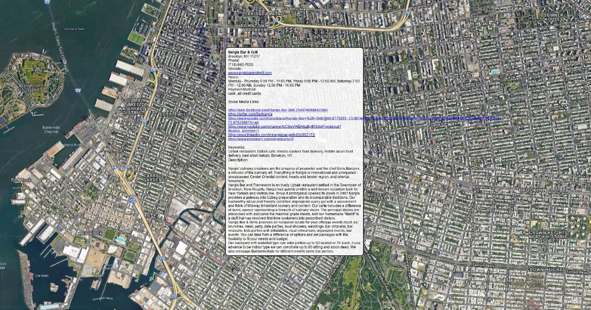 Nargis' culinary creations are the progeny of proprietor and the chef Boris Bangiev, a virtuoso of the culinary art. Everything in Nargis is innovational and unequaled - unsurpassed Center Oriental content, hearty and tender region, and oriental hospitality.