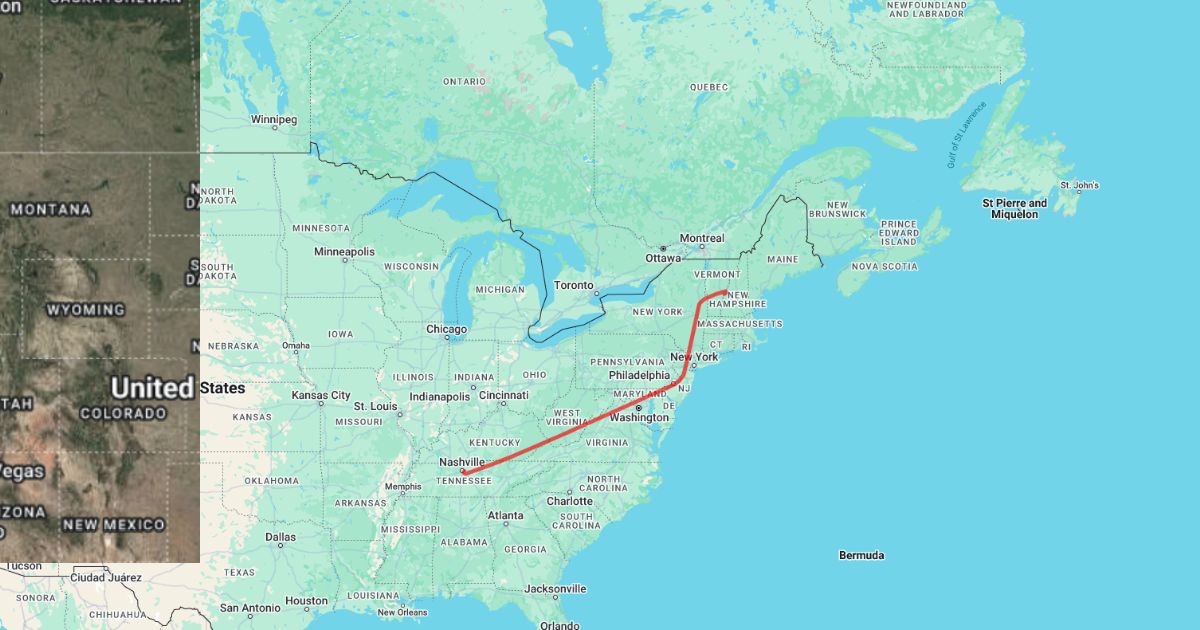 Nashville, TN to White River Junction, VT/NH (Flight Path)