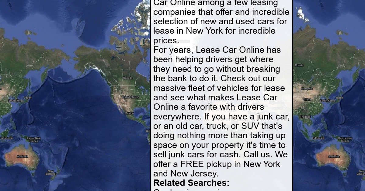 Address: Manhattan NY 10027 Phone 347-537-6035 Website http://newcarny.com GMB Listing https://goo.gl/maps/pSGVjsPcTbXUMxpS9 About us: Driving in New York can be an adventure to say the least. To help you make that adventure as fun and safe as it should be, Lease Car Online among a few leasing companies that offer and incredible selection of new and used cars for lease in New York for incredible prices. For years, Lease Car Online has been helping drivers get where they need to go without breaking the bank to do it. Check out our massive fleet of vehicles for lease and see what makes Lease Car Online a favorite with drivers everywhere. If you have a junk car, or an old car, truck, or SUV that's doing nothing more than taking up space on your property it's time to sell junk cars for cash. Call us. We offer a FREE pickup in New York and New Jersey.