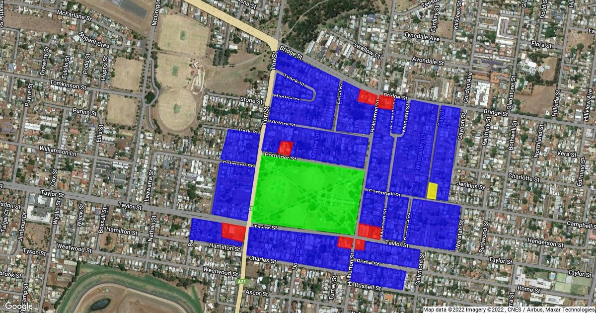 This map shows the residential/retail/restaurant areas around Newtown park in Toowoomba, QLD.