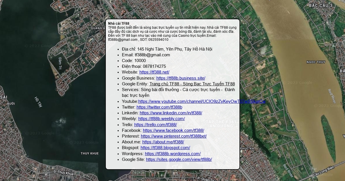 Nhà cái TF88 là sòng bạc trực tuyến chuyên cung cấp các dịch vụ cá cược như cá cược bóng đá, đánh tài xỉu, đánh xóc đĩa online, đánh phỏm, tiến lên...Địa chỉ: 790 Lê Lợi, Dĩnh Kế Bắc Giang, Email: