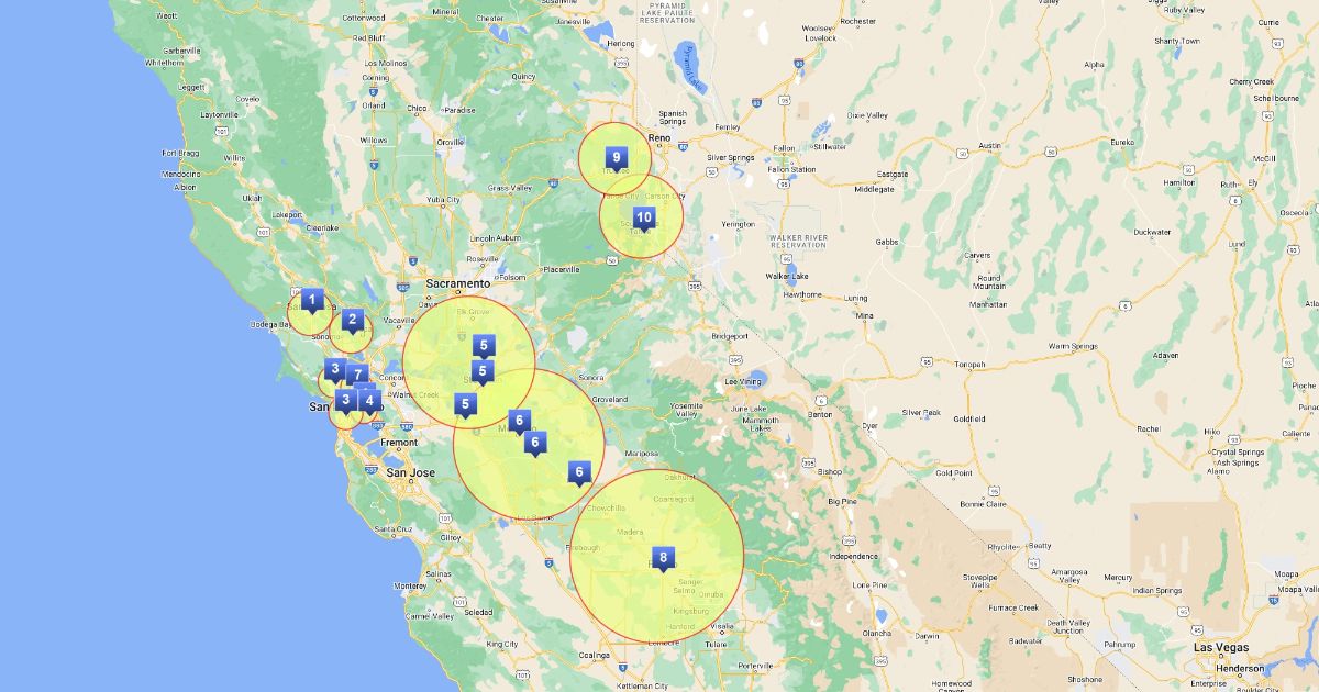 General Coverage Areas for Nor Cal pilot sites