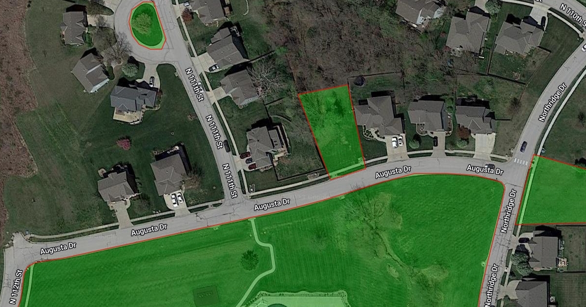 Green area is treated and/or mowed.
