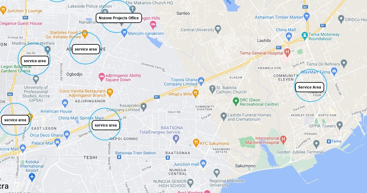Nozone Projects Service Areas