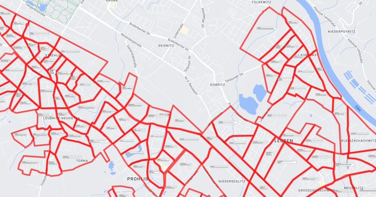 Gebietszuweisung für Faltblattverteilung und ähnliche Aktionen. Alle Straßen im genannten Gebiet. Zuzüglich der, dem Gebiet zugewandten Straßenseiten der genannten Gebietsbegrenzungsstraßen. Gebiet weiß = frei, gelb = reserviert, grün = Aktion abgeschlossen.