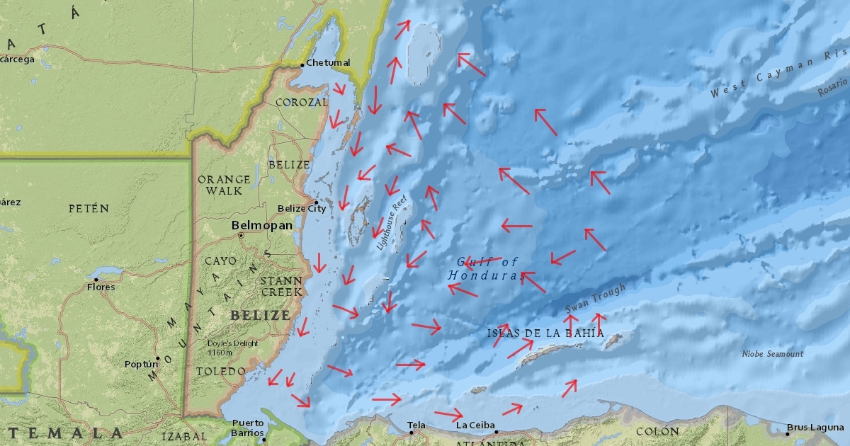 map showing ocean current in front of belize