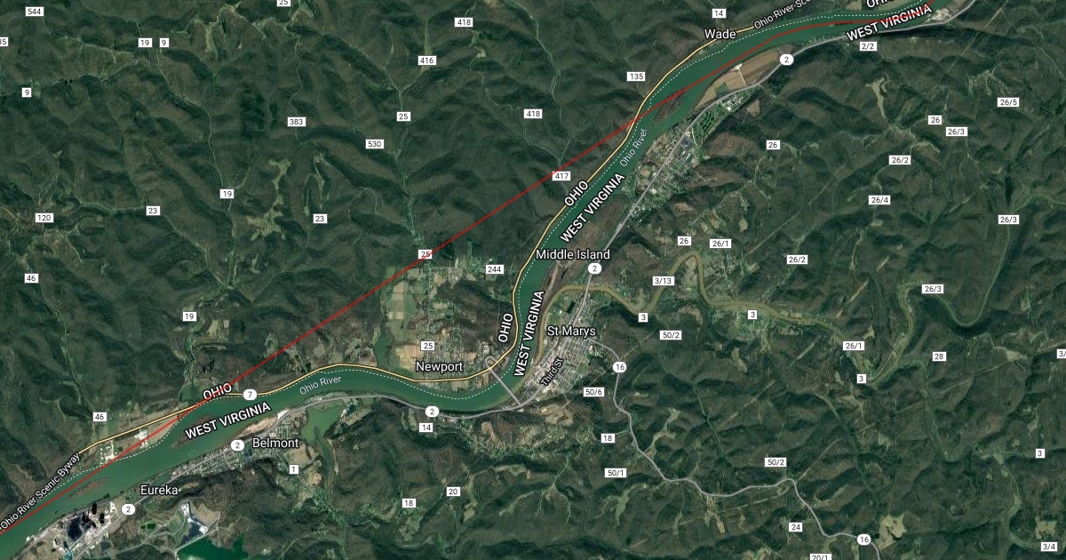 Line down the Ohio, Mississippi, and Potomic Rivers