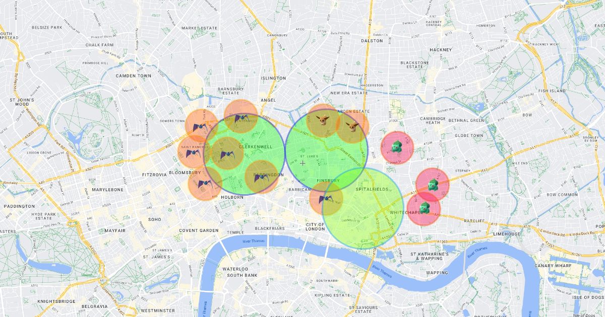 Pokémon = Mains, 0.2 miles radius