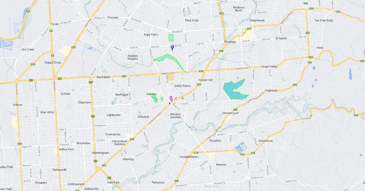 A map of social, environmental, and economic places near my house and school