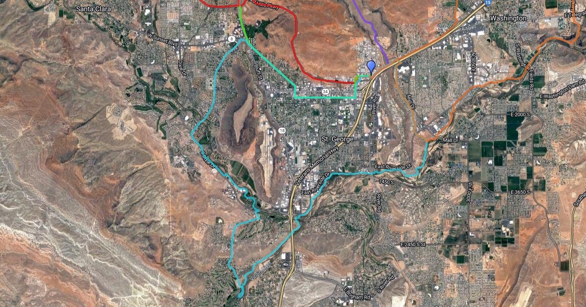 A few of route options from 1275 E. Red HIlls Parkway, St. George