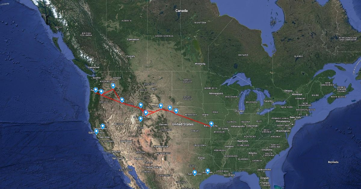 The mapped out trip along the Oregon Trail.