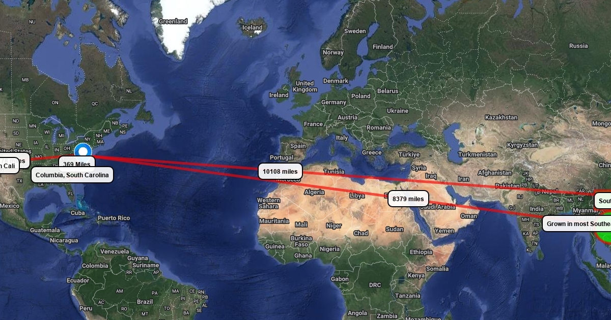 Locations where this ingredient may be grown locally