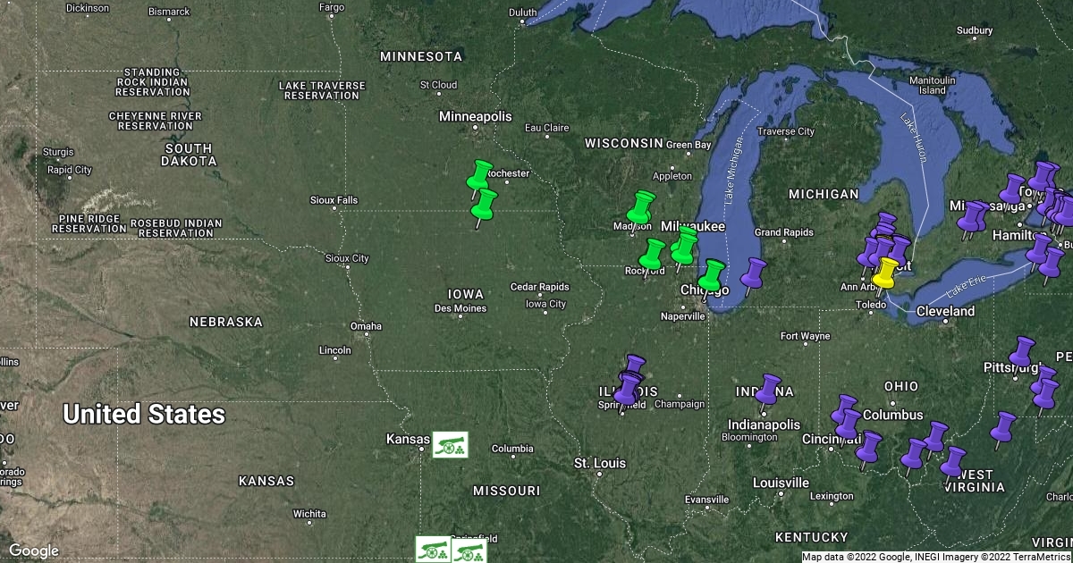 Roatrips categorized by pin color.