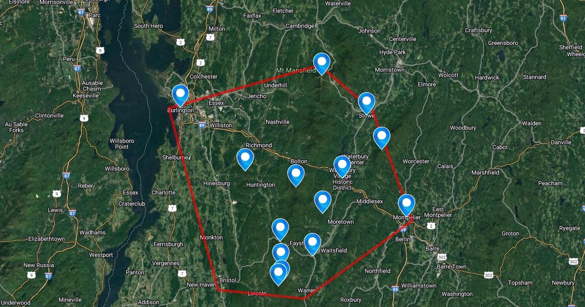 This is the area of Vermont where our wedding venue is and where we live! It should give you an idea of where everything is so you can plan your trip accordingly.