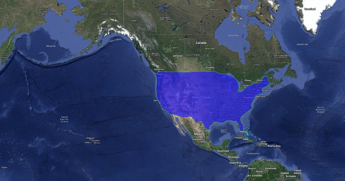 The US outlined in green