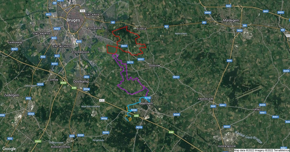 Overgang lang (vnl. blauw): 6,67 km Overgang kort (oranje, te testen): 5,58 km Lus klein (paars): 15,85 km Lus groot (rood): 16,03 km