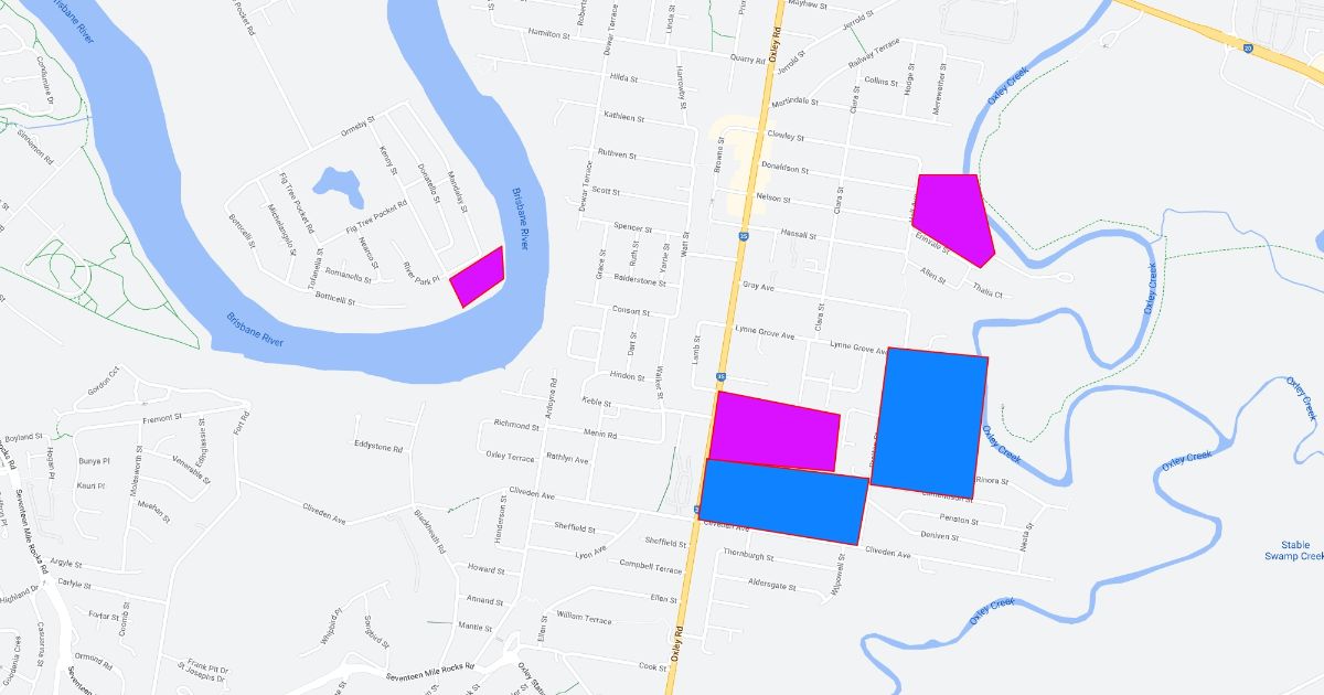 this is a map of Oxley road representing its recreational, residential, educational and commercial features of the road.