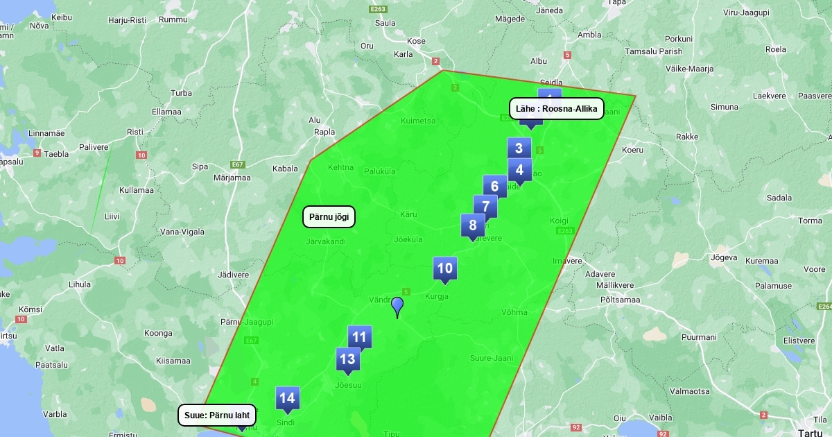 Pärnu jõe lähe ja suue ning looklemine