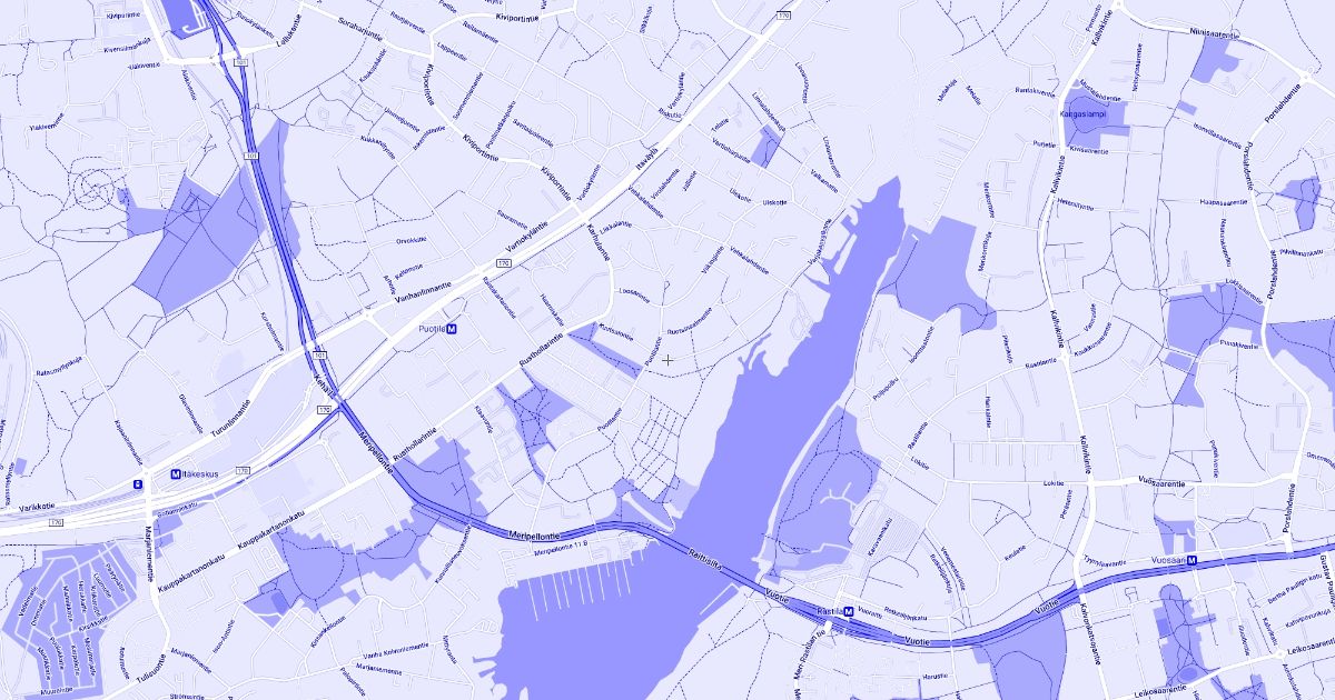 Blue map of Puotila neighborhood