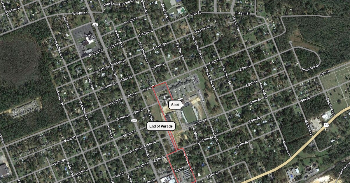Start and ending points for MG parade.