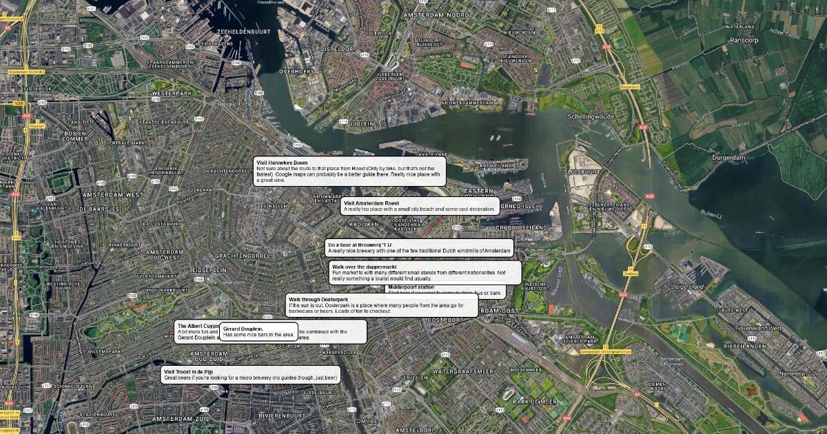 A map for Pawel with suggestions for his weekend in Amsterdam