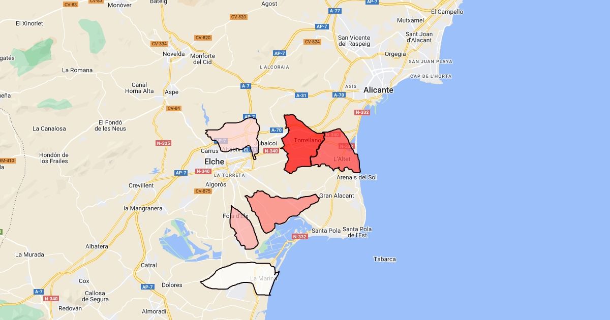pedanias de Elche más pobladas