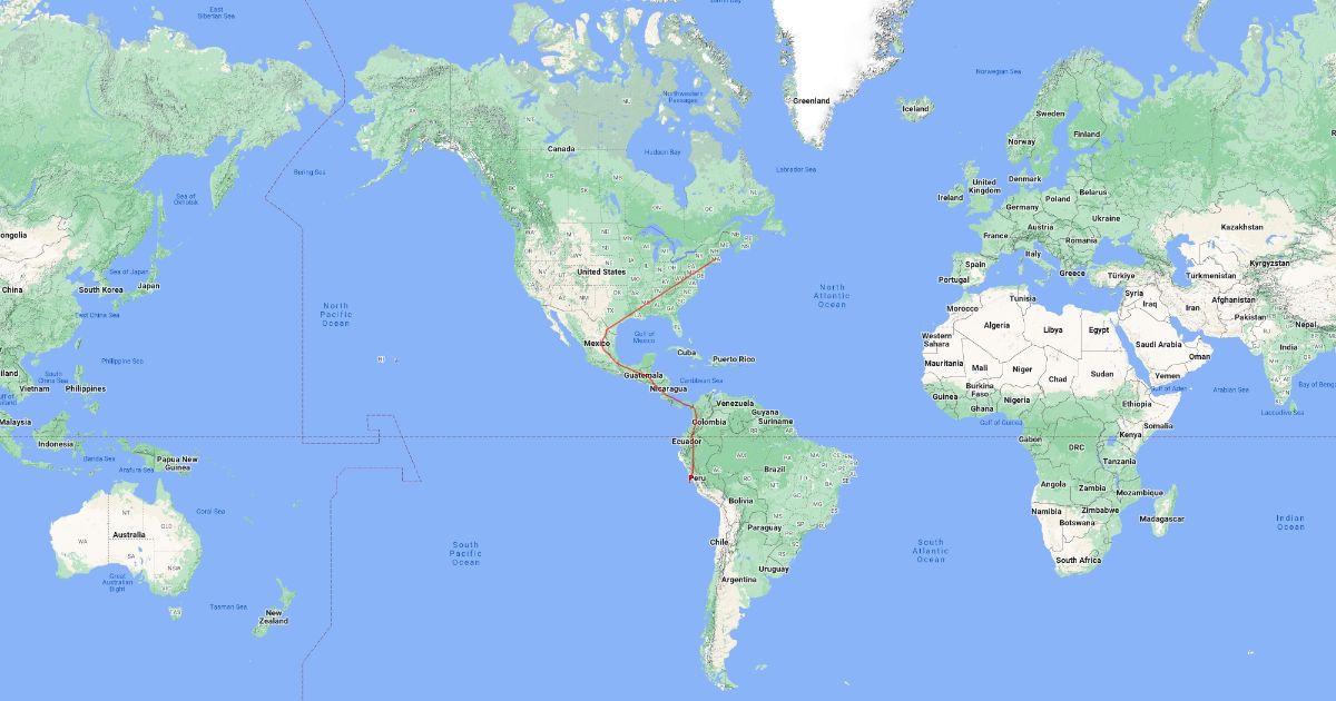 map from peru to boston, ma