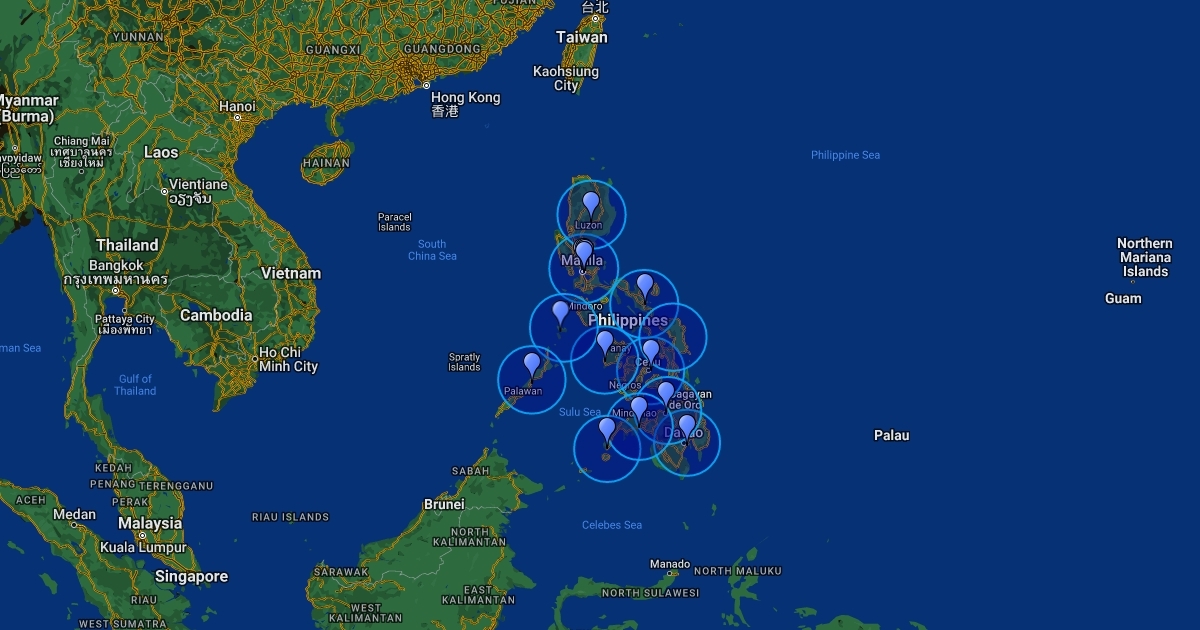 Philippines with 100 miles rings