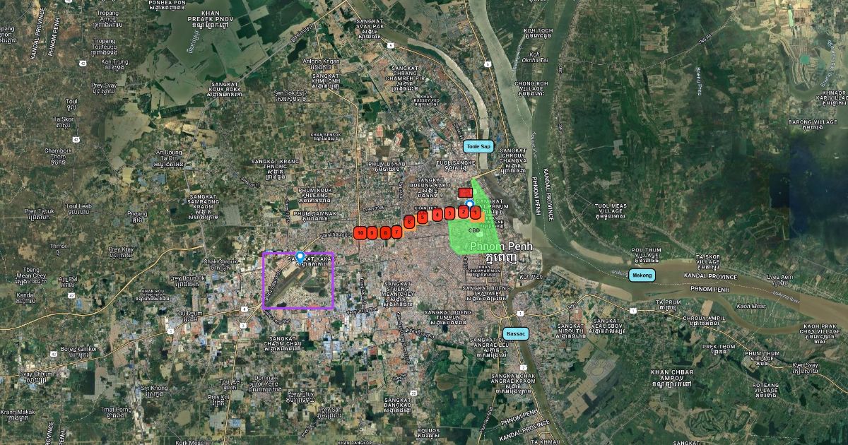 Phnom Penh map with west sites